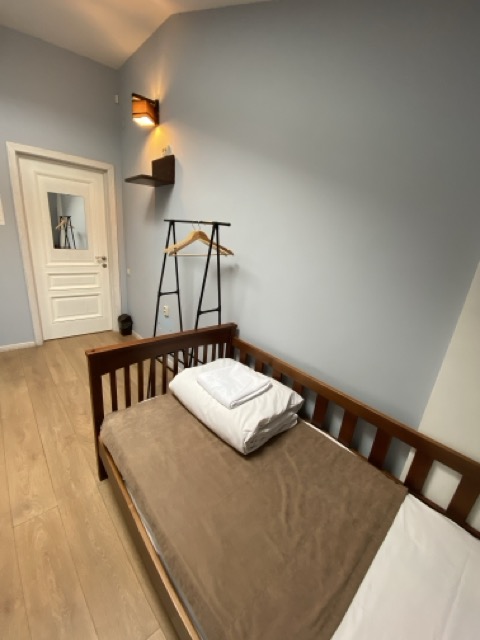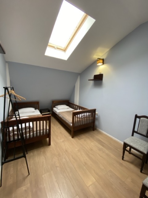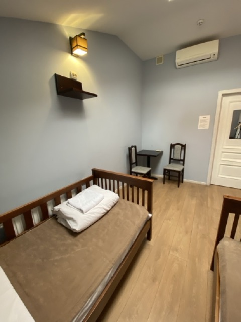 Двомісний номер з двома ліжками та загальним санвузлом. У номері є стіл, стільці та вішалки для одягу. Ви можете безкоштовно скористатись Wi-Fi, праскою, феном та повністю устаткованою кухнею.